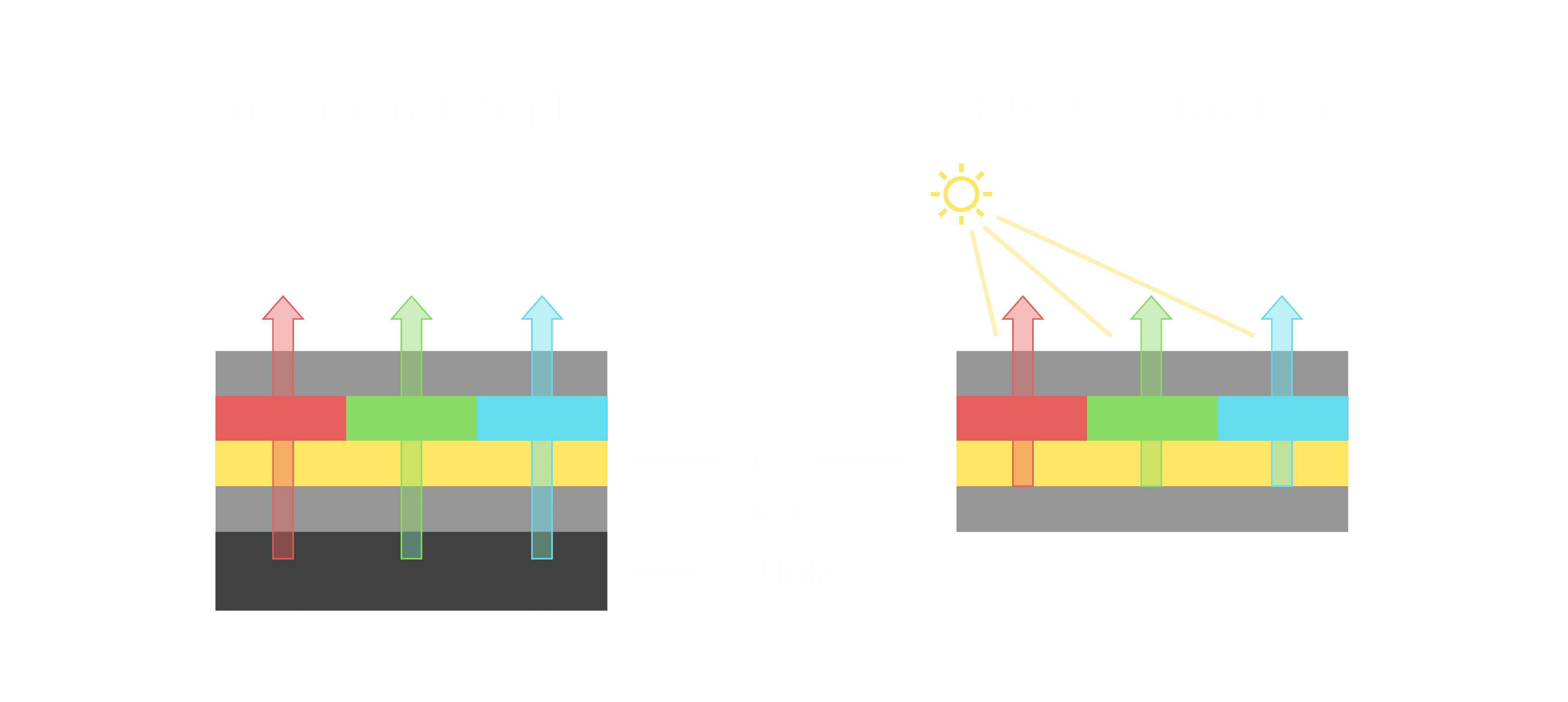与传统需搭配背光单元的液晶显示相比,,,,反射式液晶技术不仅更省电、、、更轻薄,,,且即便在艳阳下仍能清晰显示。。。此外,,少了背光单元,,,,也大幅降低了 LED 蓝光伤害眼睛的疑虑。。。。